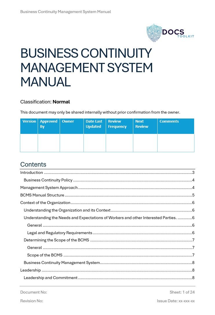 ISO 22301 Documentation Toolkit | Manual, Procedures, Forms, Audit Checklists